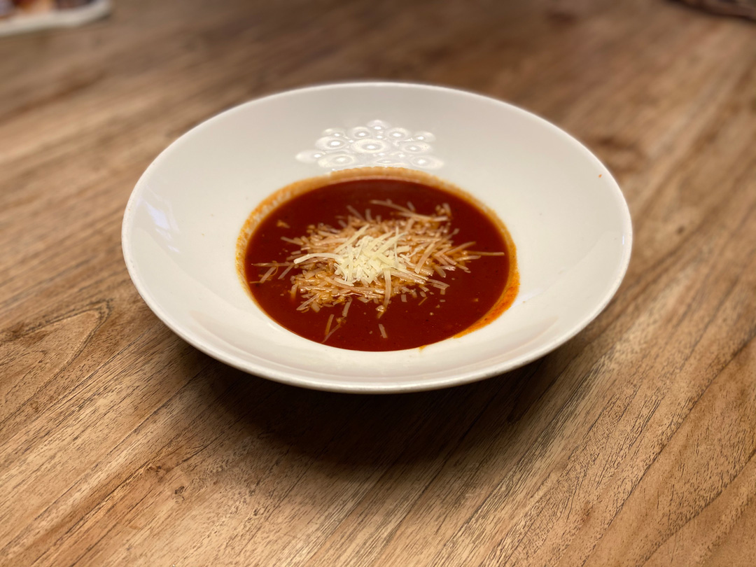 tomat, mozzarella, rucola, cherry paradajky, prosciutto crudo, parmezán
